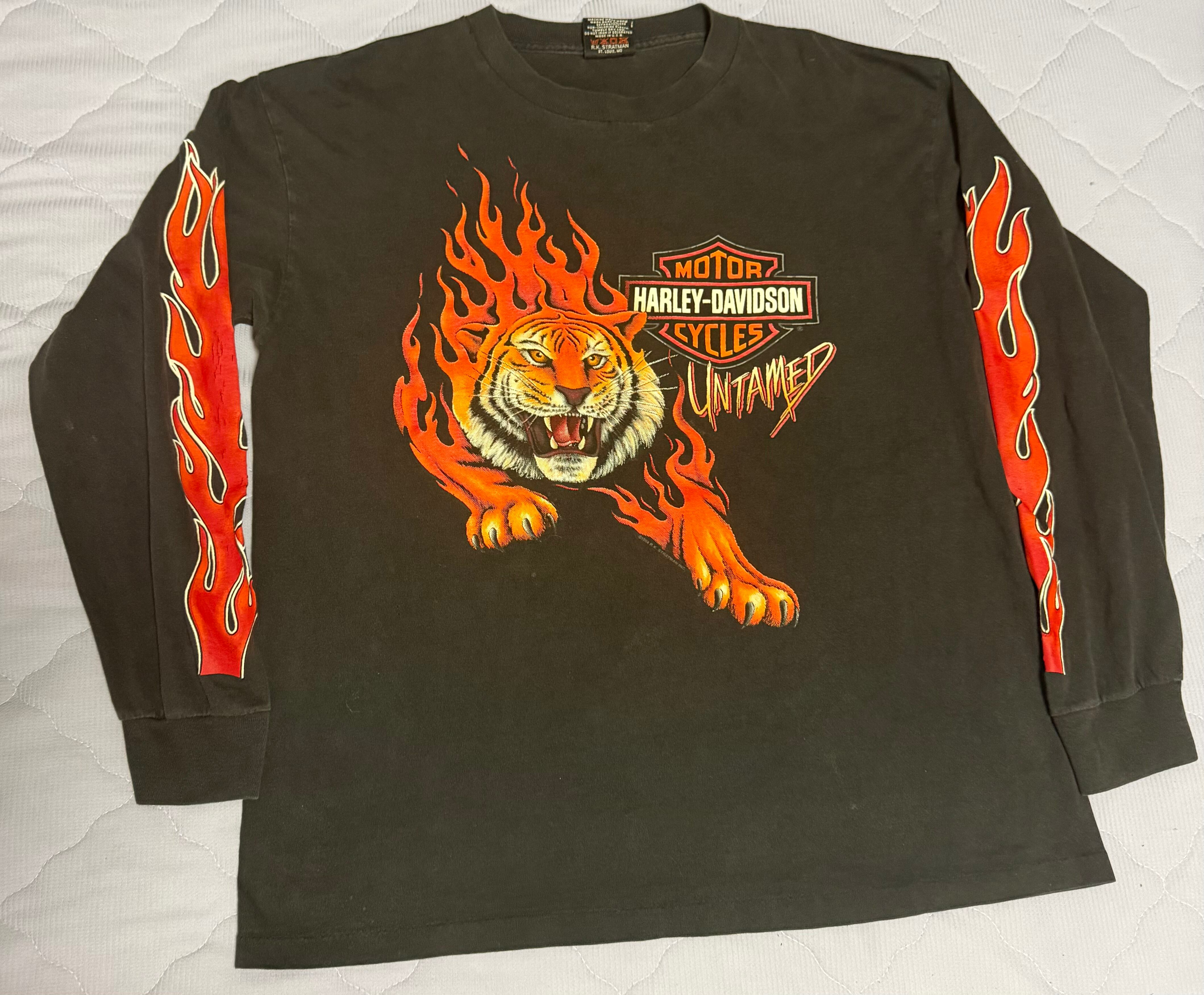 激レア L 美品 公式タグ Harley Davidson ハーレーダビッドソン フレア タイガー 虎 ビンテージ ヴィンテージ l/S ロンT vintage long sleeve tee